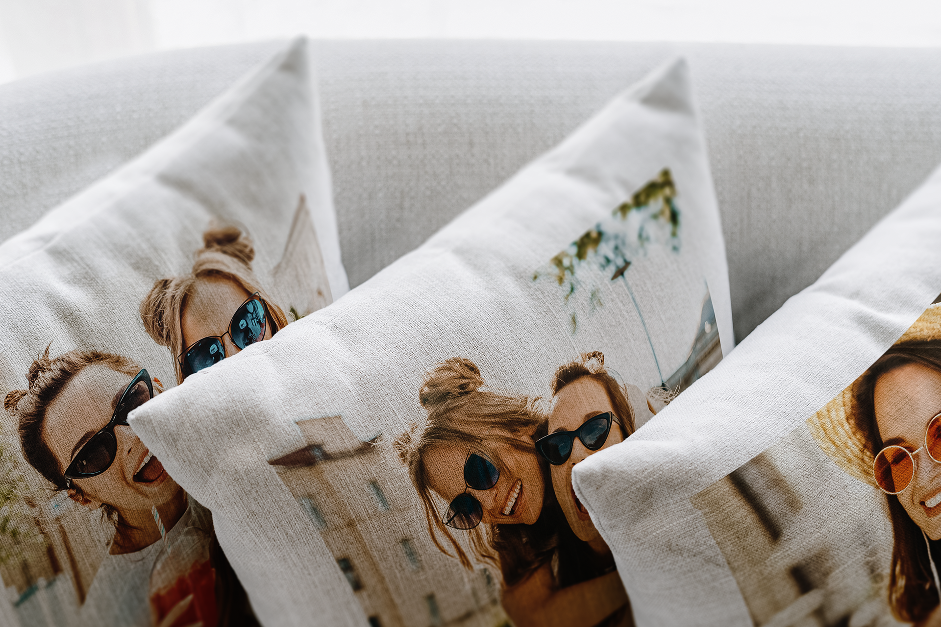 A luxurious yet highly durable pillow, fully designed by you. Your custom photo pillow will be printed on plush polyester fabric and sewn closed. An elevated complement to your coziest spaces: beds, sofas & loveseats. Whether you feature photographs or a fine art print, you can create the perfect accent piece for someone special.